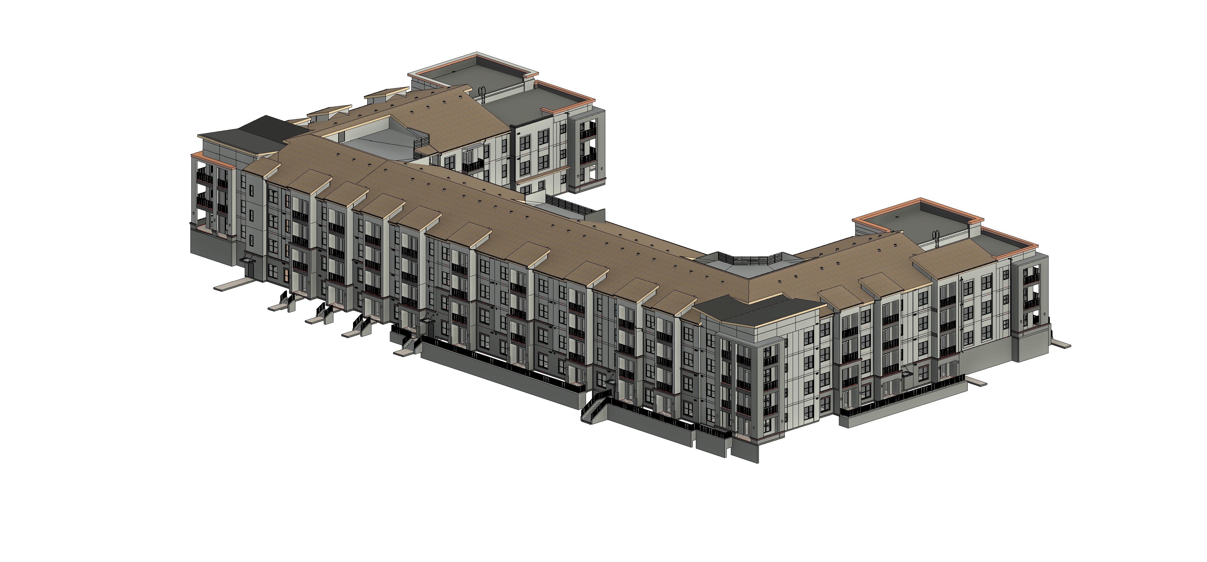 This work included the development of Revit-based unit prototypes for multifamily residential projects. Over an extended engagement, we created detailed BIM models and standardized drawing sets for more than 40 unit types, covering a range of configurations and layouts. These prototypes were used as the basis for assembling larger building blocks and typical floor plans, allowing project teams to generate building designs efficiently while maintaining consistency.
