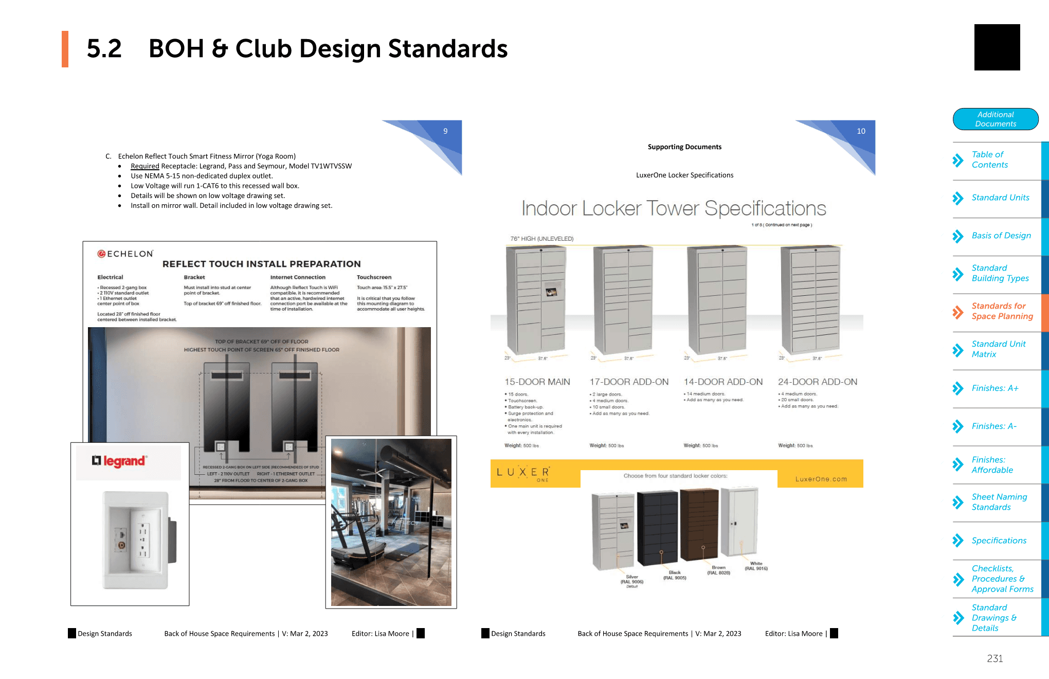 The manual captured basis-of-design criteria alongside defined standards for lighting, finishes, fixtures, material specifications, and typical details. It also documented standard policies, forms, and internal workflows used across design, pre-construction, and procurement teams.